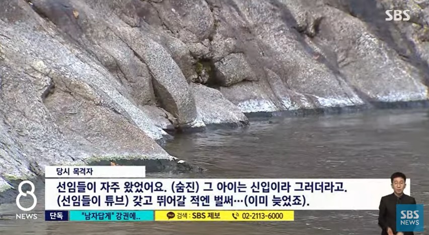 계곡에서 다른 선임이 먼저 다이빙을 했고, 그 후 조 하사가 주저하자 이들은 “빠지면 구해주겠다”고 말한 것으로 밝혀졌다.