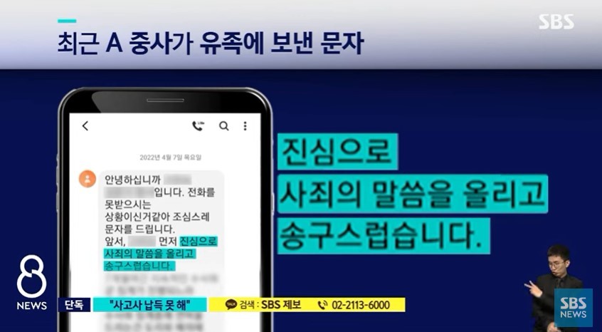 무엇보다 A 중사를 비롯한 계곡 동행 선임들은 유족에 사과 한 마디 없었다. 취재가 시작된 이후에야 뒤늦은 사과 메시지를 전한 것으로 알려졌다.