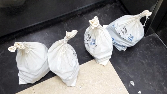 여러 개의 자루에 든 금액은 총 130여만원.