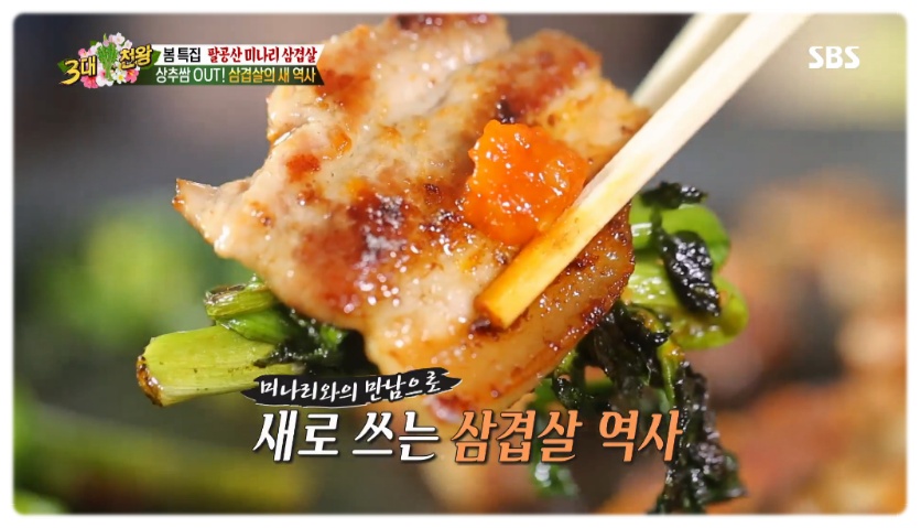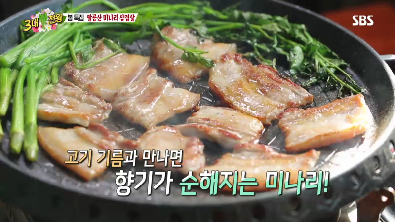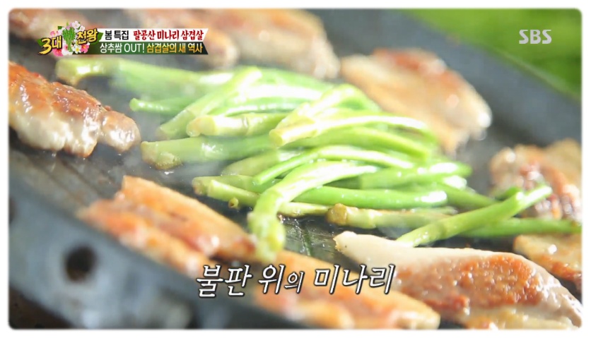 실제로 SBS ‘3대천왕’에서는 방송인 백종원이 직접 ‘미나리 삼겹살’ 시식에 나섰다.