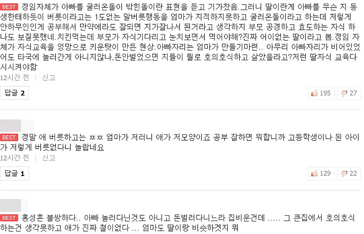 딸은 아빠가 밤늦게 게임을 하는 데 불만을 표출했는데, 아빠는 특목고에 다니는 딸이 공부를 한다는 핑계로 유난을 떤다고 받아들이고 딸의 불만에 마우스를 내던졌다.