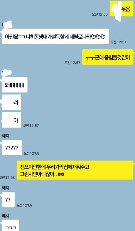 그거 보고 나한테 연락한거야 ㅋㅋㅋ근데 일진이가 무슨 동생을 데리고 나오면 자기가 설득한대 ㅋㅋㅋㅋㅋㅋ