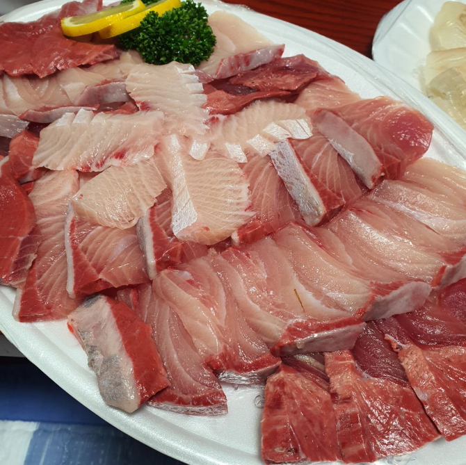 많은 사람들은 신선한 회를 즐겨 먹는다.