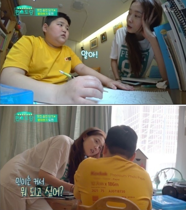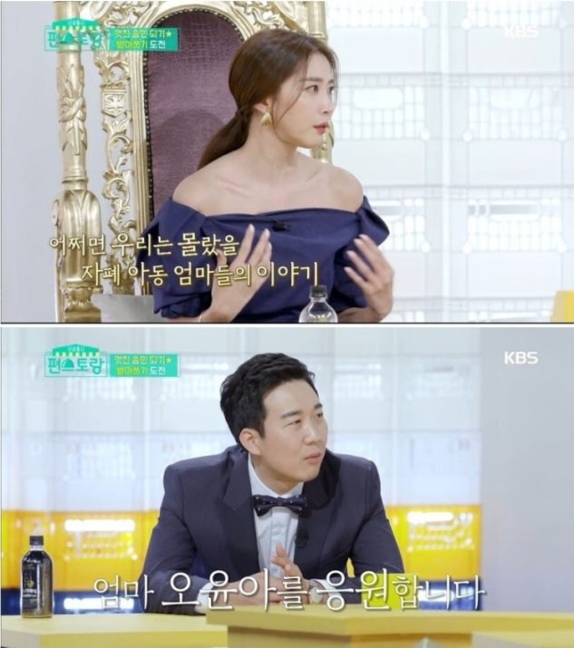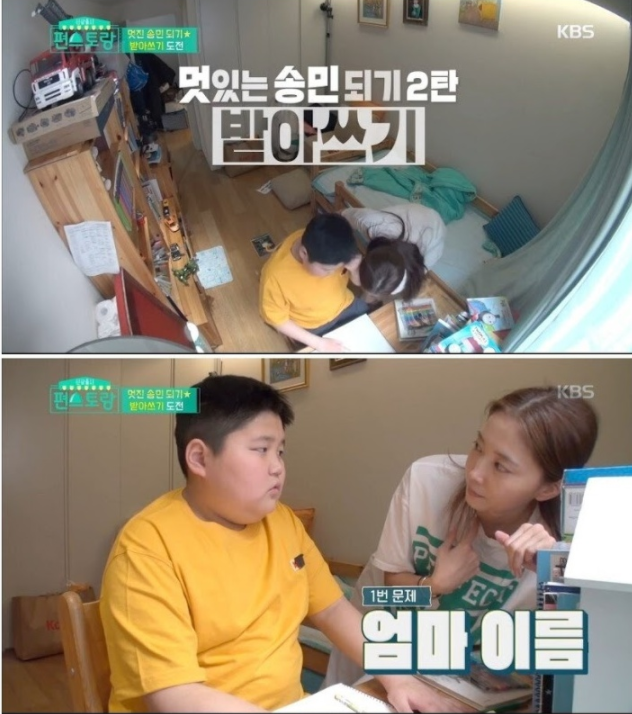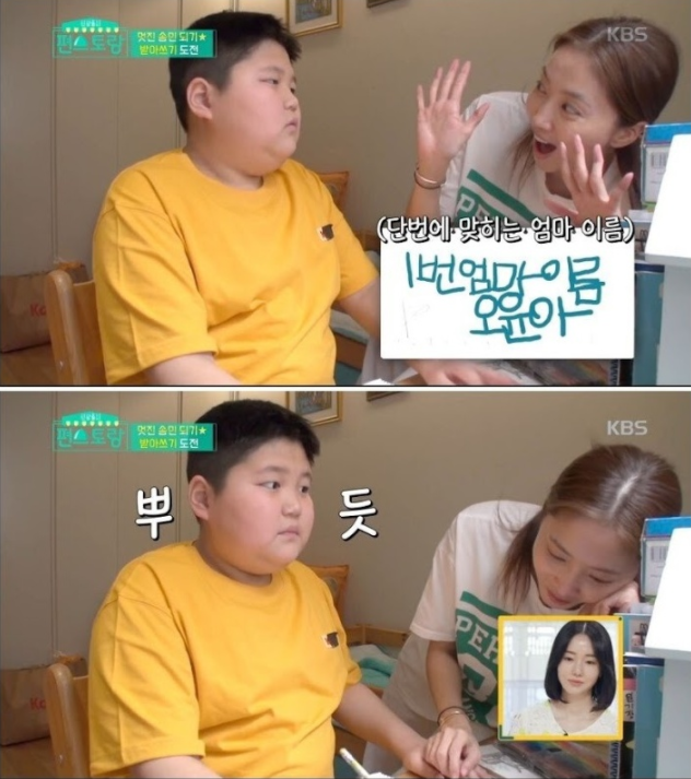 앞서 방송된 KBS ‘편스토랑’에 출연한 배우 ‘오윤아’가 발달 장애를 앓고 있지만 천사같은 아들 송민과 공부하는 모습을 보여줬다.