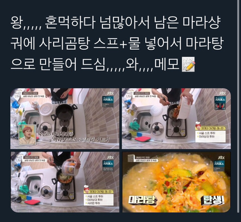 재재는 이를 냉장고에 보관했다가 다음날 ‘마라탕’으로 되살려냈다.