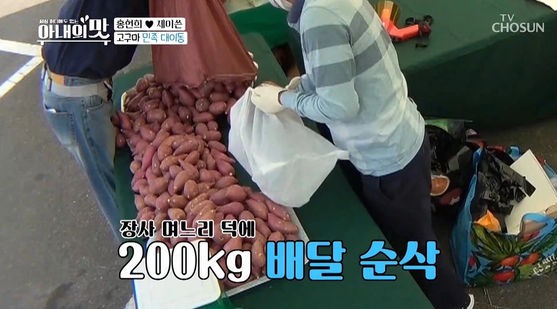 지난 20일 방영된 TV조선 ‘아내의 맛’에는 홍현희♥제이쓴 부부가 시아버지와 함께 직접 재배한 고구마 판매에 나섰다.