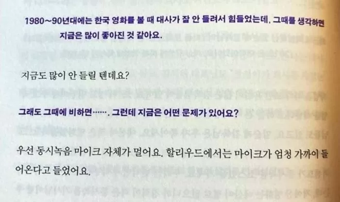 그는 한 캡처본에서 ‘1980~1990년대에 국내 영화를 볼 땐 대사가 잘 안 들렸는데 지금은 많이 나아지지 않았냐’는 질문에 “지금도 많이 안 들릴 것”이라는 단호한 답변을 보기도 했다.