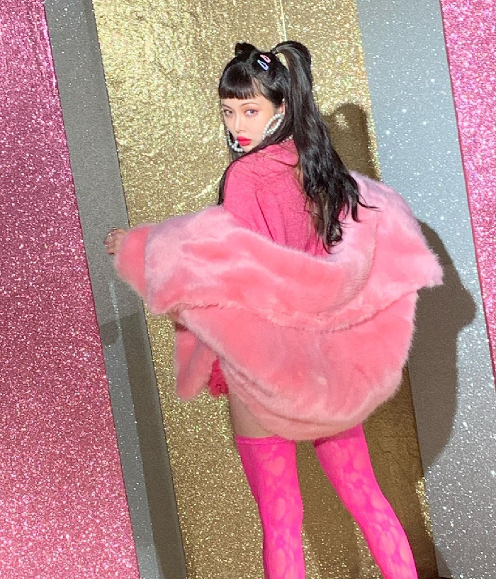 또한 그는 옆트임이 있는 보디슈트로 과감한 노출을 선보이기도 했다. 이에 일각에서는 “신곡 콘셉트 아니냐”는 추측이 이어지기도 했다.