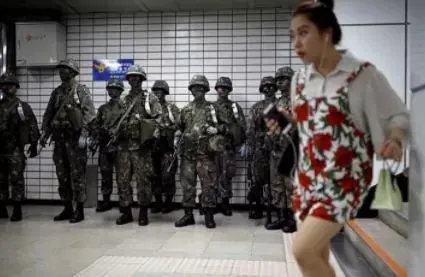 이로인해 지하철과 공공장소에서도 우리는 군인들을 볼 수 있고 그 상황에 깜짝 놀란 외국인들도 볼 수 있다.