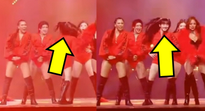 더 황당한 것은 안무를 까먹어서 혼자 뒤를 대놓고 돌아보고, 민망한지 미소를 짓는 순간까지 포착되고 말았다.
