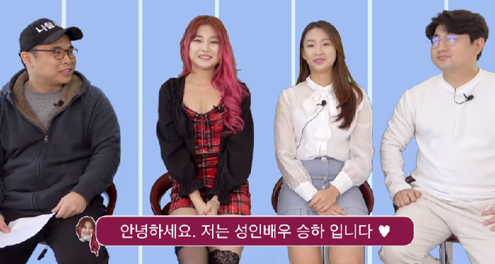 영상 속 승하는 “모델로 활동하다가 대표님의 추천을 받아 성인영화를 찍게 됐다. 데뷔 두 달동안 40편의 작품에 출연했다”고 밝혔다.