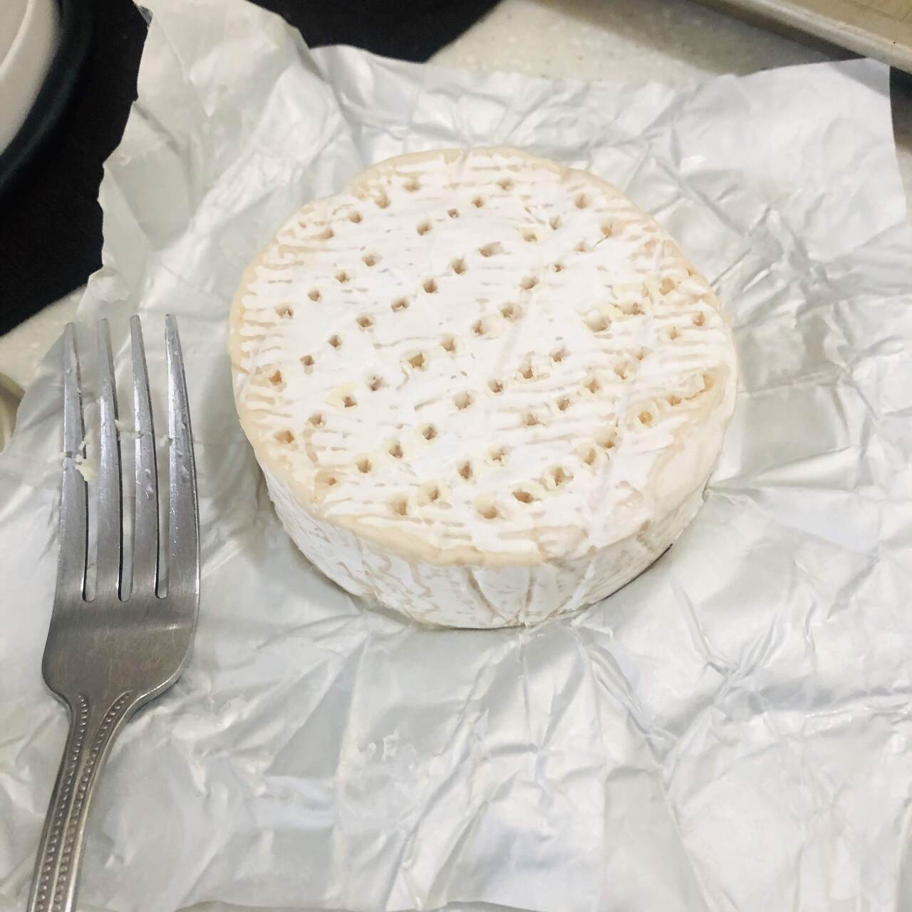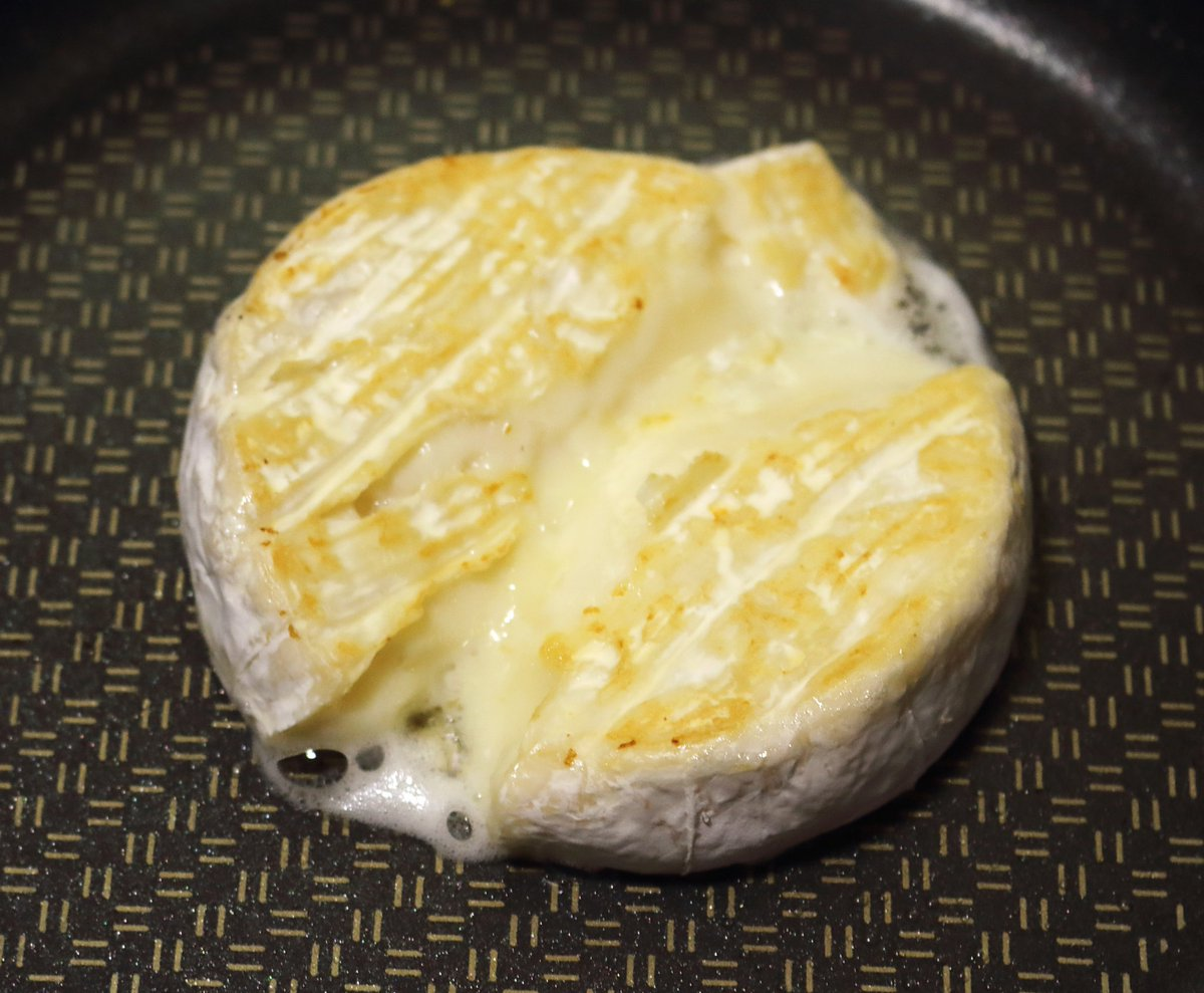포크로 브리치즈에 구멍을 송송 뚫은 후, 후라이팬이나 오븐에 굽는다.