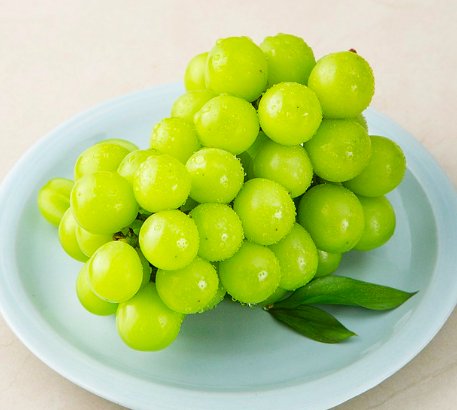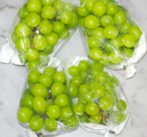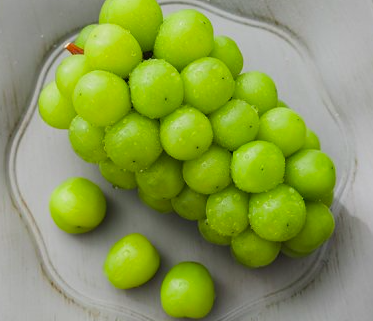 샤인머스캣은 번들거리며 밝은 연두빛이 도는 껍질이 특징이다.