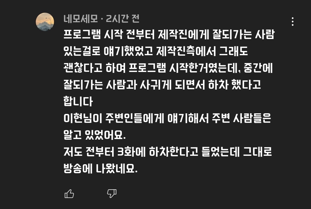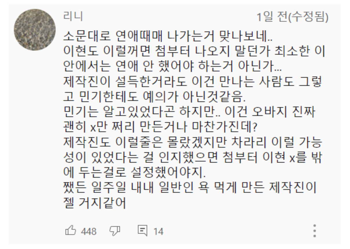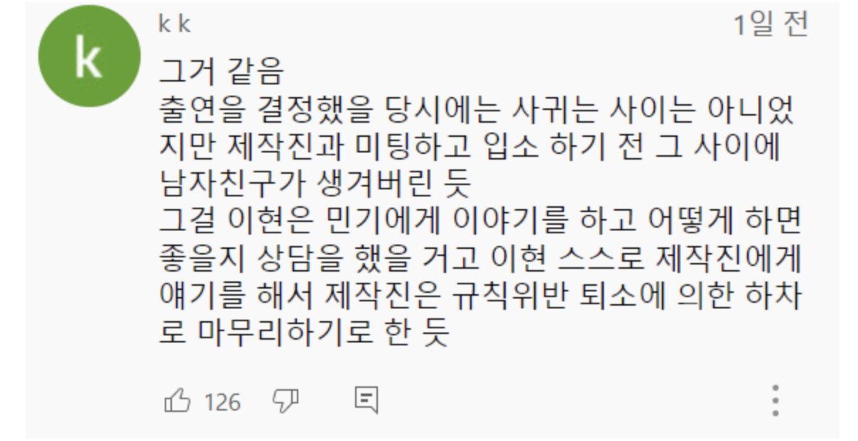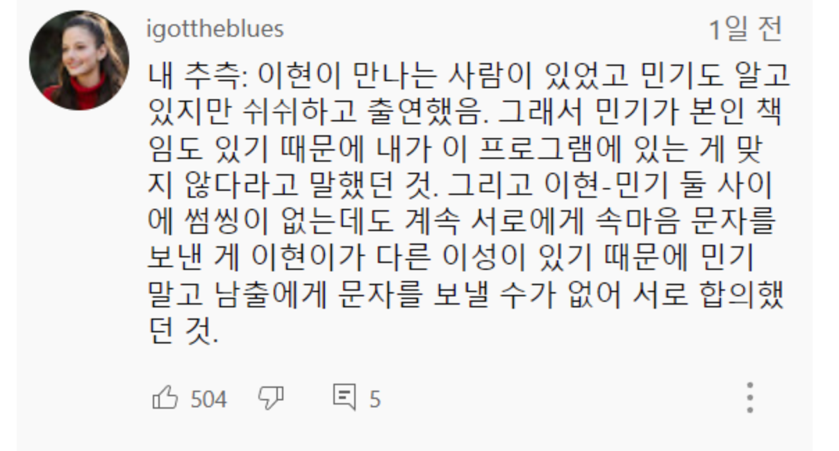 이에 온라인 커뮤니티에는 “환연 최이현 퇴소 이유 이거라던데”라는 제목의 글이 올라와 누리꾼들 사이에서 엄청나게 화제가 되고 있다.