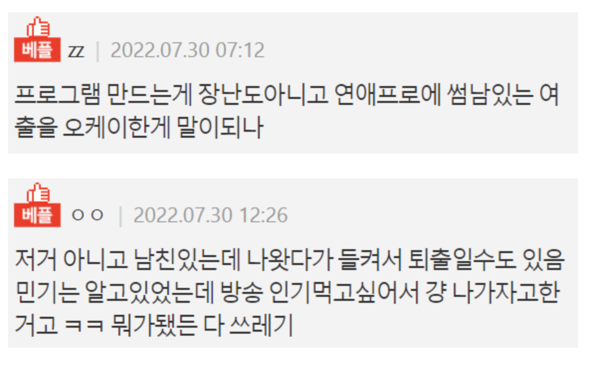 해당 게시물을 접한 누리꾼들은 “근데 규칙에도 써 있음 최종 선택하는 날 까지 누구와도 사귀면 안 된다고”, “이거 맞는 듯…”,”전 x는 무슨 죄냐..”라며 현재 다양한 반응을 보이고 있다.