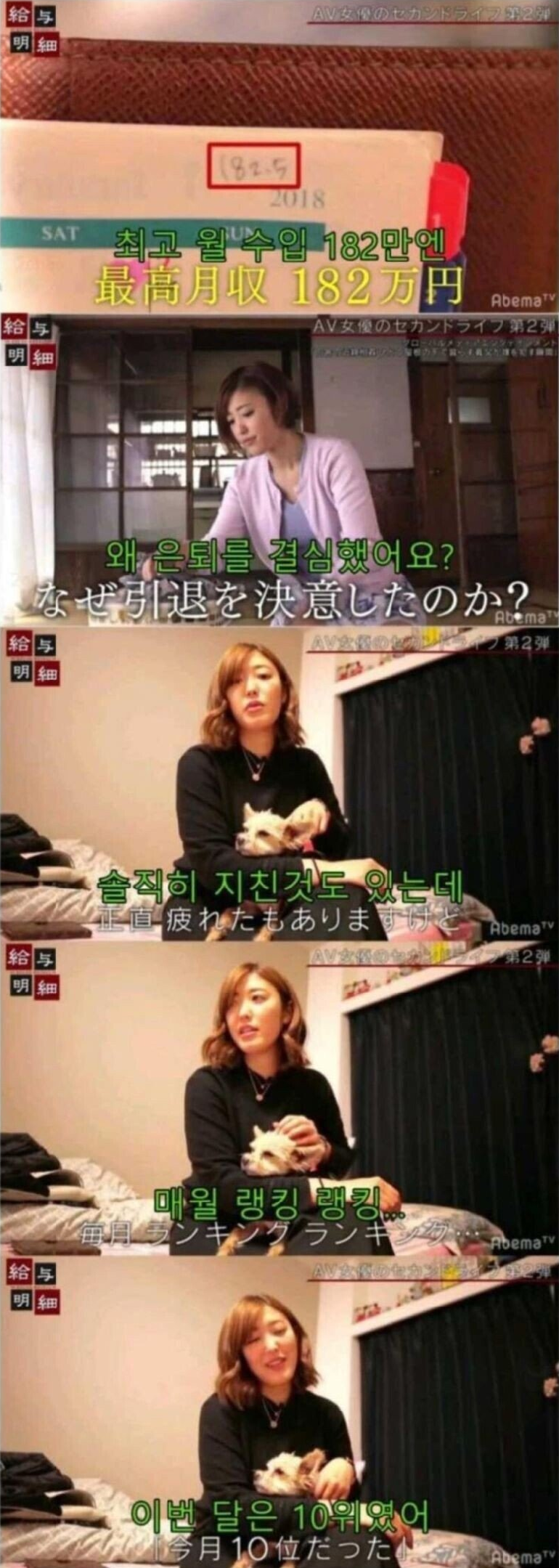 당시 월수입에 대해선 “최고 월 수입은 182만엔(한화 약 1934만 원)”이라고 답했다.