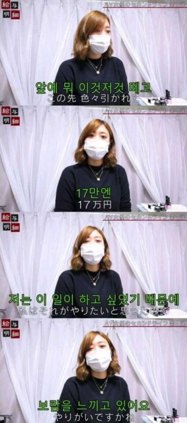 그는 “지금은 17만엔(180만 원) 번다. 그러나 이 일을 하고 싶었기 때문에 보람을 느끼고 있다”고 전했다.