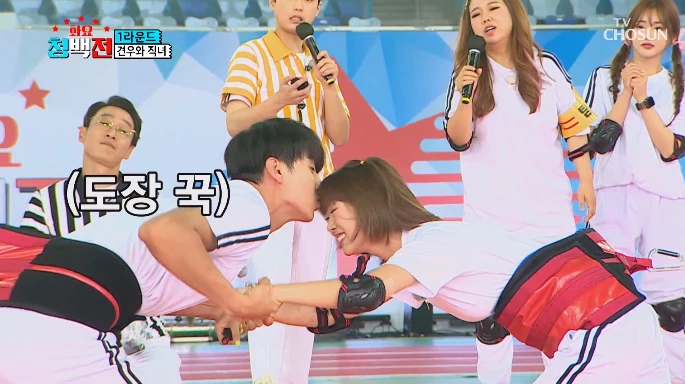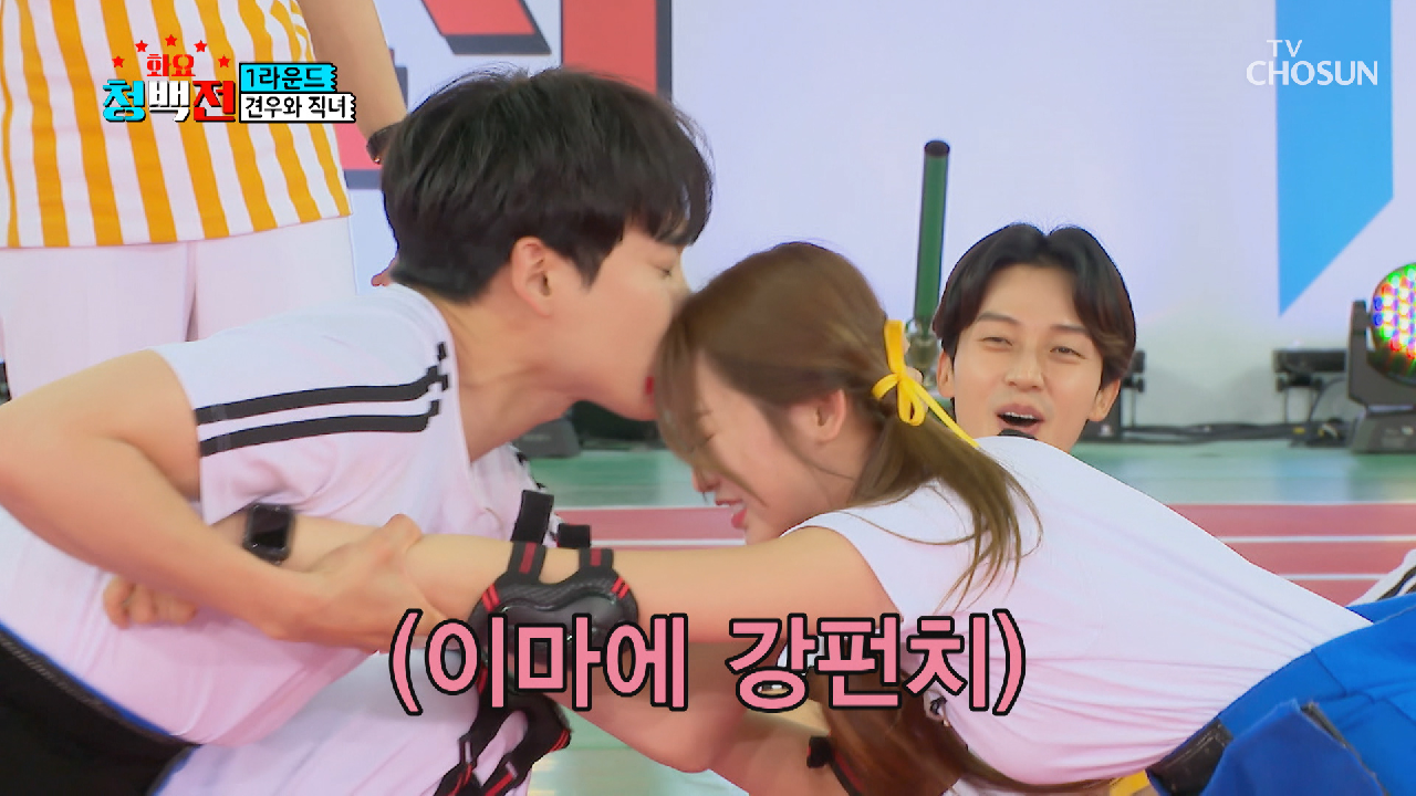 지난 25일 방영된 TV조선 ‘화요 청백전’에는 출연진들이 ‘이마 키스’ 게임을 하는 장면이 등장했다.