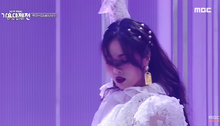 이날 현아와 던은 화이트로 맞춘 의상을 입고 무대에 섰다.