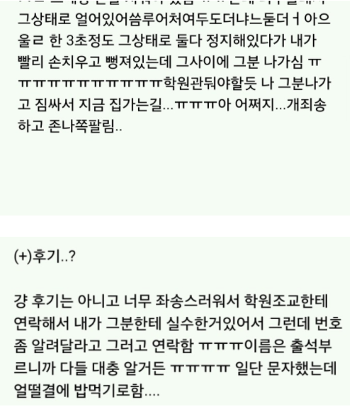 근데 너무 놀래서 소중이 위에 손을 치우지 않고 3초정도 정지하고 있었다고 한다.