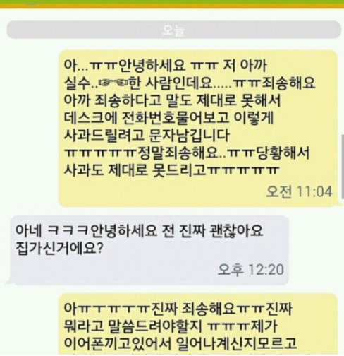 그렇게 대참사가 일어난 후 연락처를 알아내서 연락을 하게 됐다.