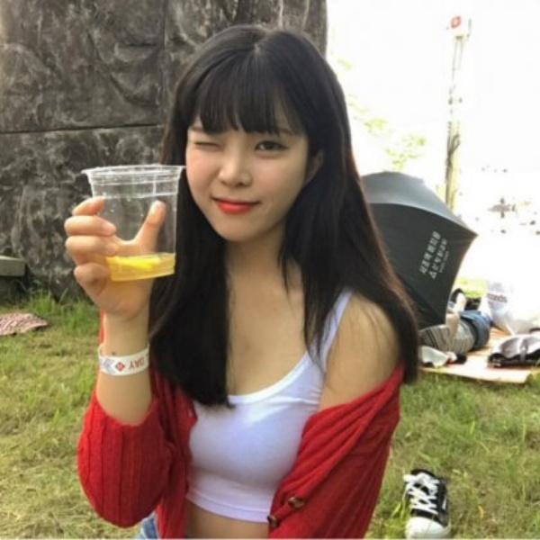 5)컵을 들고 윙크를 하며 상큼한 이미지를 뽐내는 아이유 느낌
