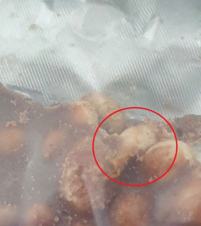 초콜릿을 먹던 그는 평소와는 다른(?) 이물감을 느껴 초콜릿을 자세히 바라 보았다가 경악할 수 밖에 없었다.