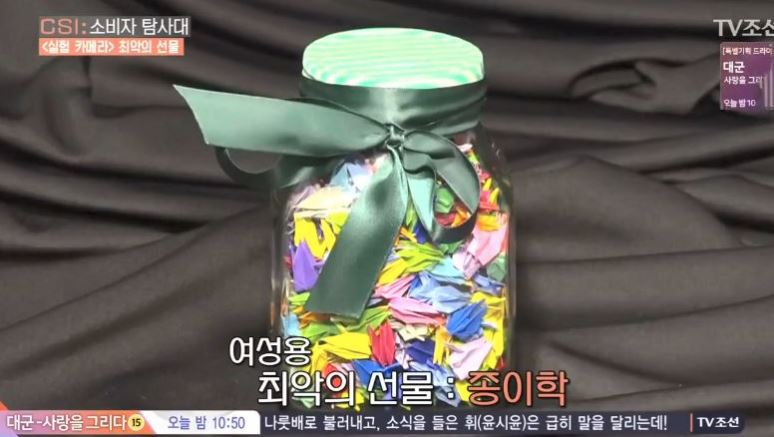 과거 티비조선 ‘CSI 소비자 탐사대’에서는 남녀 커플간의 ‘최악의 선물’ 실험을 진행했다.