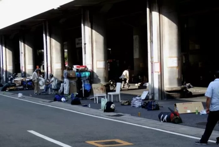 노숙자도 많을 뿐더러 ‘토비타신치’라 불리는 거대한 집창촌도 근처에 있으며, 일본의 최대 범죄조직인 야쿠자도 활동을 많이 한다.