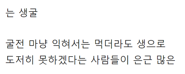 고급 식재로 유명해 그 몸값이 제법 비싼 굴이지만 애호가들에게 한국은 신선하고 품질 좋은 굴을 매우 저렴한 가격에 살 수 있는 천국 수준의 나라다.