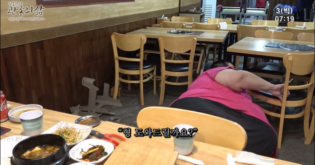 갑자기 식사를 하던 빅죠의 의자가 그 무게를 이기지 못하고 부서지며 모든 사람들이 깜짝 놀라서 달려가는 일이 일어났다.