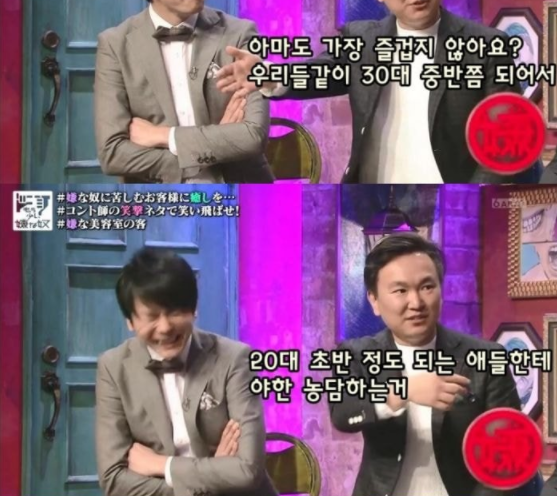 우리들 같이 30대 중반쯤 되어서 20대 초반 정도 되는 애들한테 야한 농담하는거 그게 가장 즐겁지 않아요?” 라는 발언을 해서 네티즌 들에게 비난을 받고 있다.