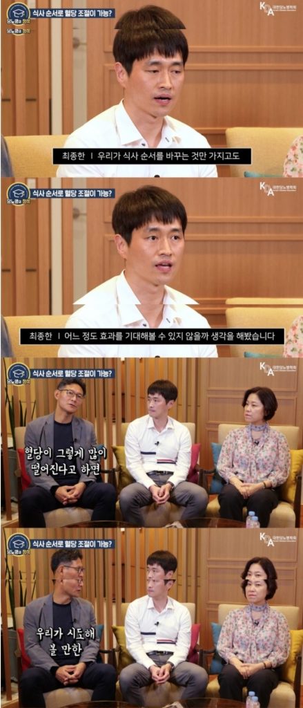 이어 그는 “채소나 단백질을 먼저 섭취하면 포만감을 좀 더 빨리 유발시켜 먹는 양을 조금이나마 줄일 수 있다. 적게 먹으니 자연스럽게 체중도 줄고 혈당도 덜 오르는 것”이라고 설명했다.