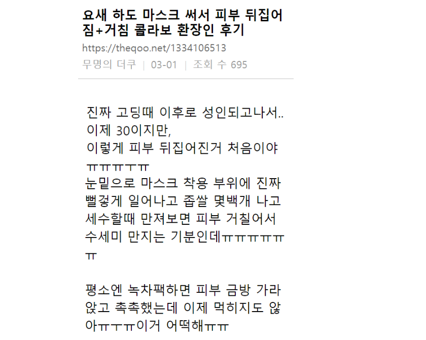 여러 커뮤니티를 통해서도 얼굴 트러블이 더 심해졌다고 고통을 호소하는 누리꾼들이 속출했다.