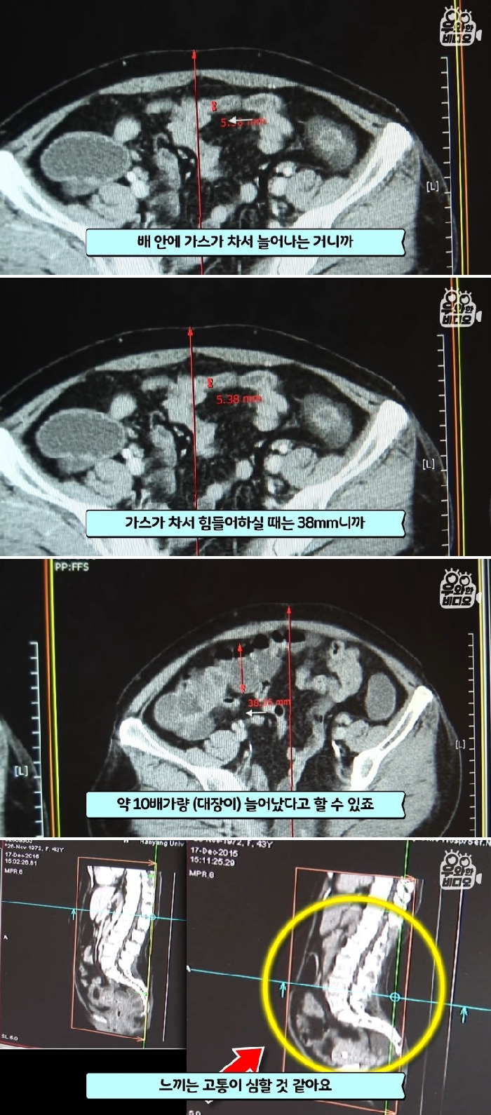해당 영상에는 매일 복통에 시달리는 여성의 사연이 담겼다. 여성은 “언제 고통이 올지 모른다. 출산의 고통이라고 생각하면 된다”고 말했다.