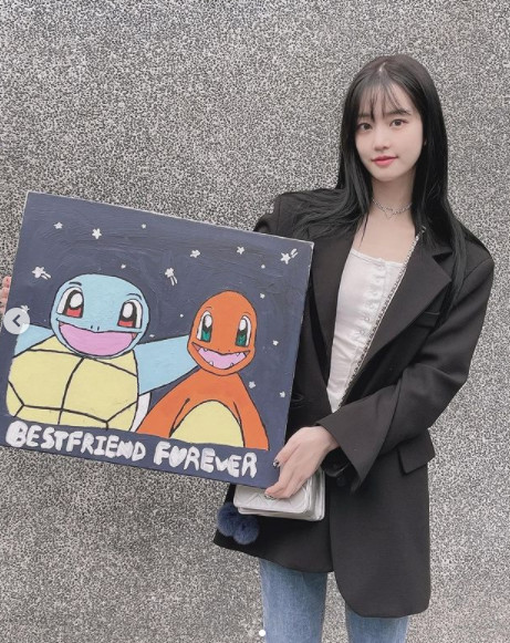 지난 1일 이유비는 자신의 인스타그램에 직접 그린 그림을 손에 들고 포즈를 취했다.