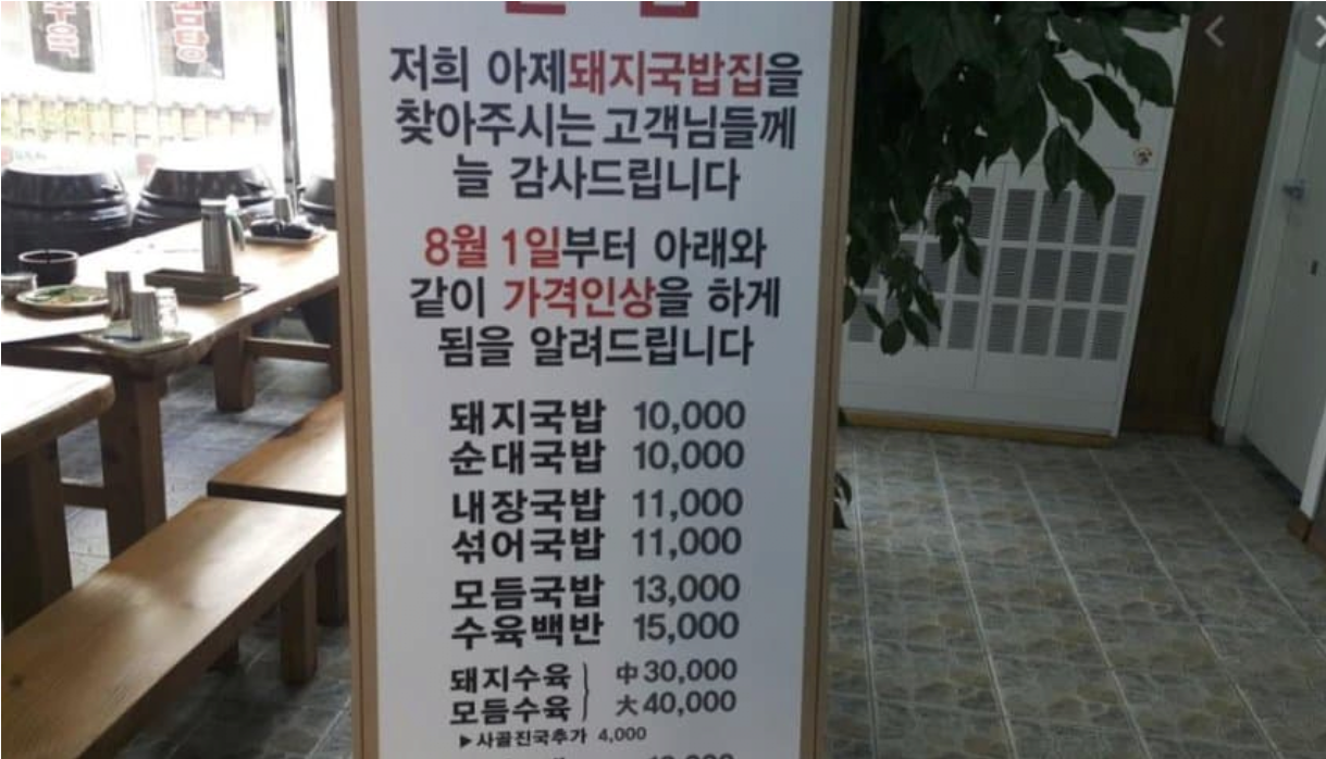 저렴한 가격에 부담없이 즐겨먹던 국밥도 이젠 비싸서 못 먹는 불확실성의 시대로 접어들어버렸다.