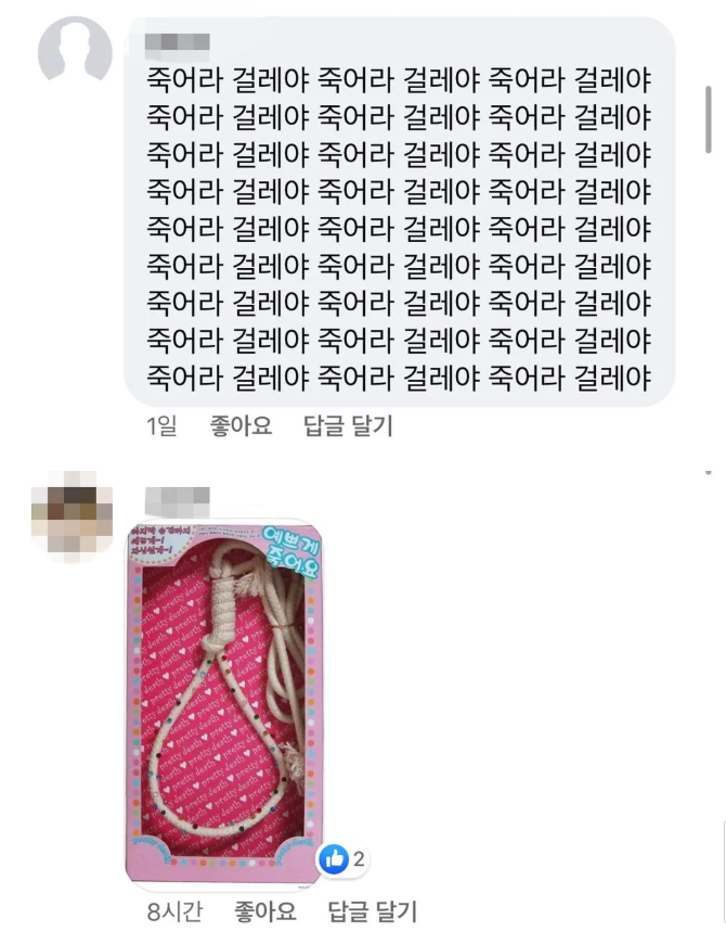 이에 많은 누리꾼들은 더욱 분노를 했으며 직접 개인SNS에 찾아가 욕설과 성.희.롱을 하기 시작했다.