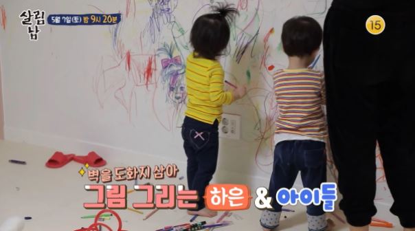 오전 10시, 잠에서 깨 가족들을 찾아 나선 이천수는 방에 모여 벽에 낙서를 하고 있는 모습을 발견하고는 표정이 굳어져 “벽에 낙서하면 안되지”라며 싫은 내색을 했지만 심하은이 대수롭지 않은 듯 “나중에 도배하면 돼”라고 말했다.