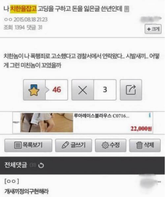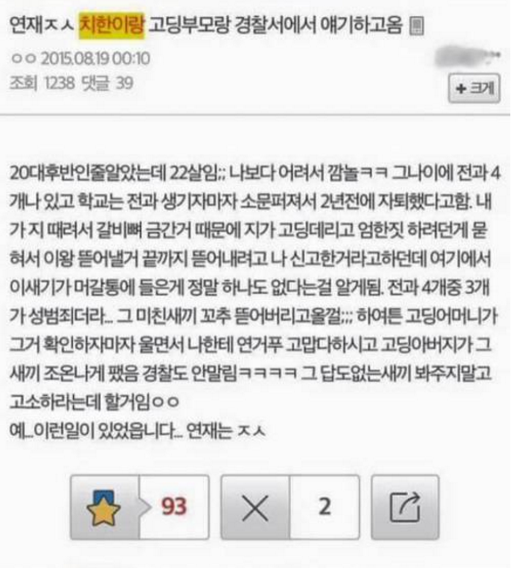 치한 뭘 잘했다고 ㅉㅉ 뻔뻔