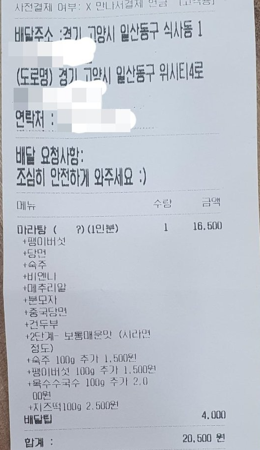 그렇게 마라탕을 받은 A씨는 황당함을 금치 못했다.