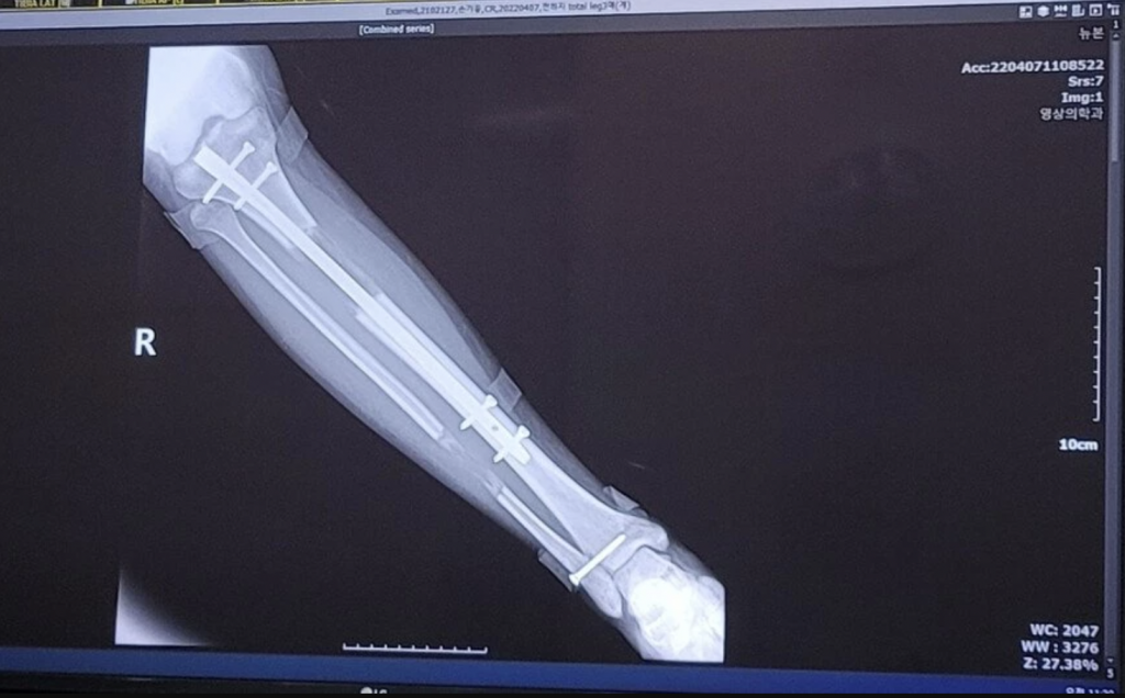 그는 “다리뼈 진이 잘 나와서 5월 중에 목발 뗄 수 있을 것 같다”고 전했다.