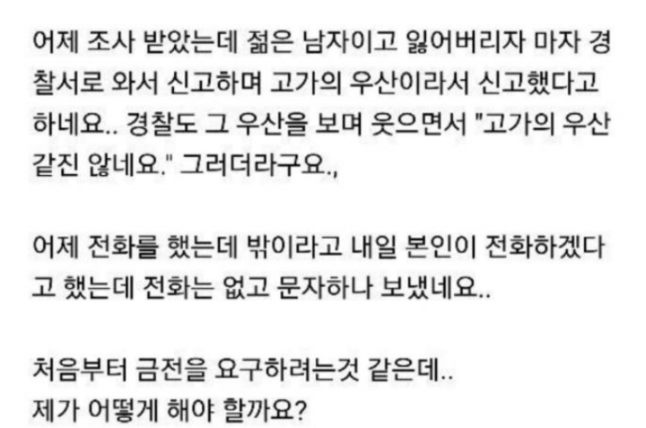 해당 게시물에는 흔히 보이는 길에 버려진 우산을 주워갔다가 낭패를 본 한 네티즌의 사연이 소개됐다.