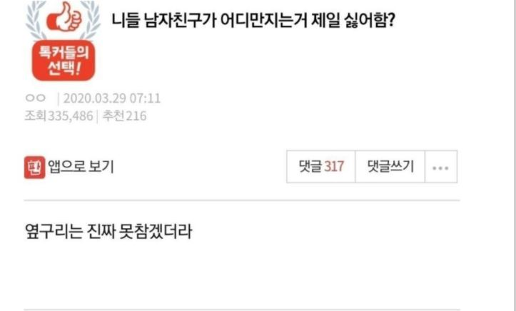 온라인 커뮤니티사이트에는 “니들 남친이 어디만지면 제일 싫어함?”이라는 제목의 게시글이 올라와 누리꾼들 사이에서 화제가 됐다.