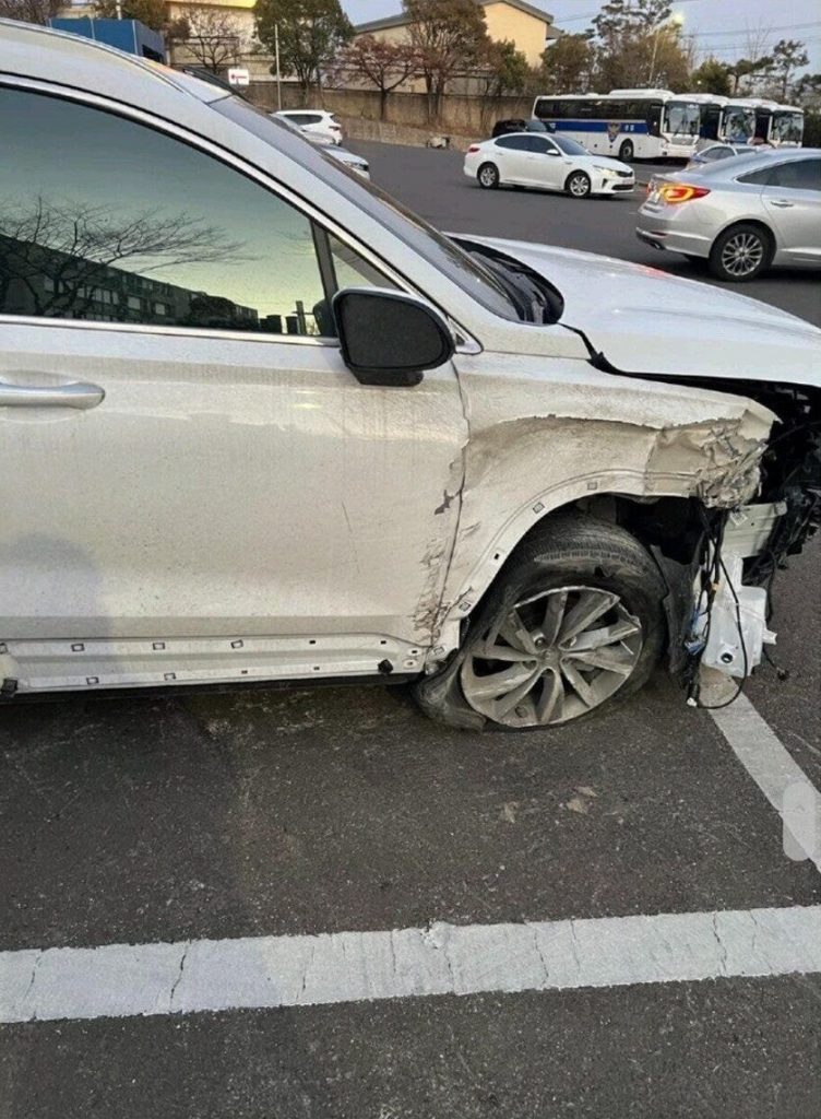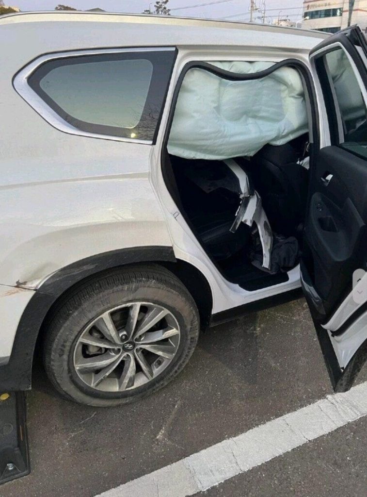 A씨의 차량은 이미 심각하게 부서졌으며 에어백도 터지는 등 폐차 직전의 상태였다.