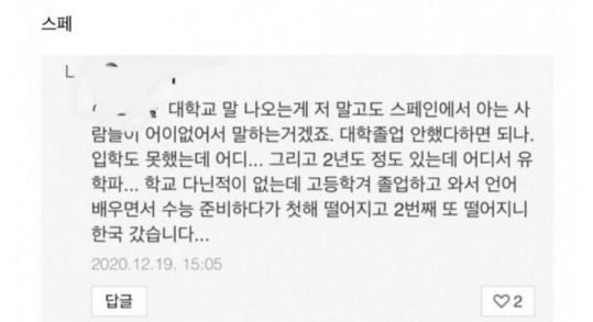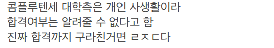 글쓴이는 “콜플루텐세 대학측은 개인 사생활이라 합격 여부는 알려줄 수 없다고 함”라고 말했다.