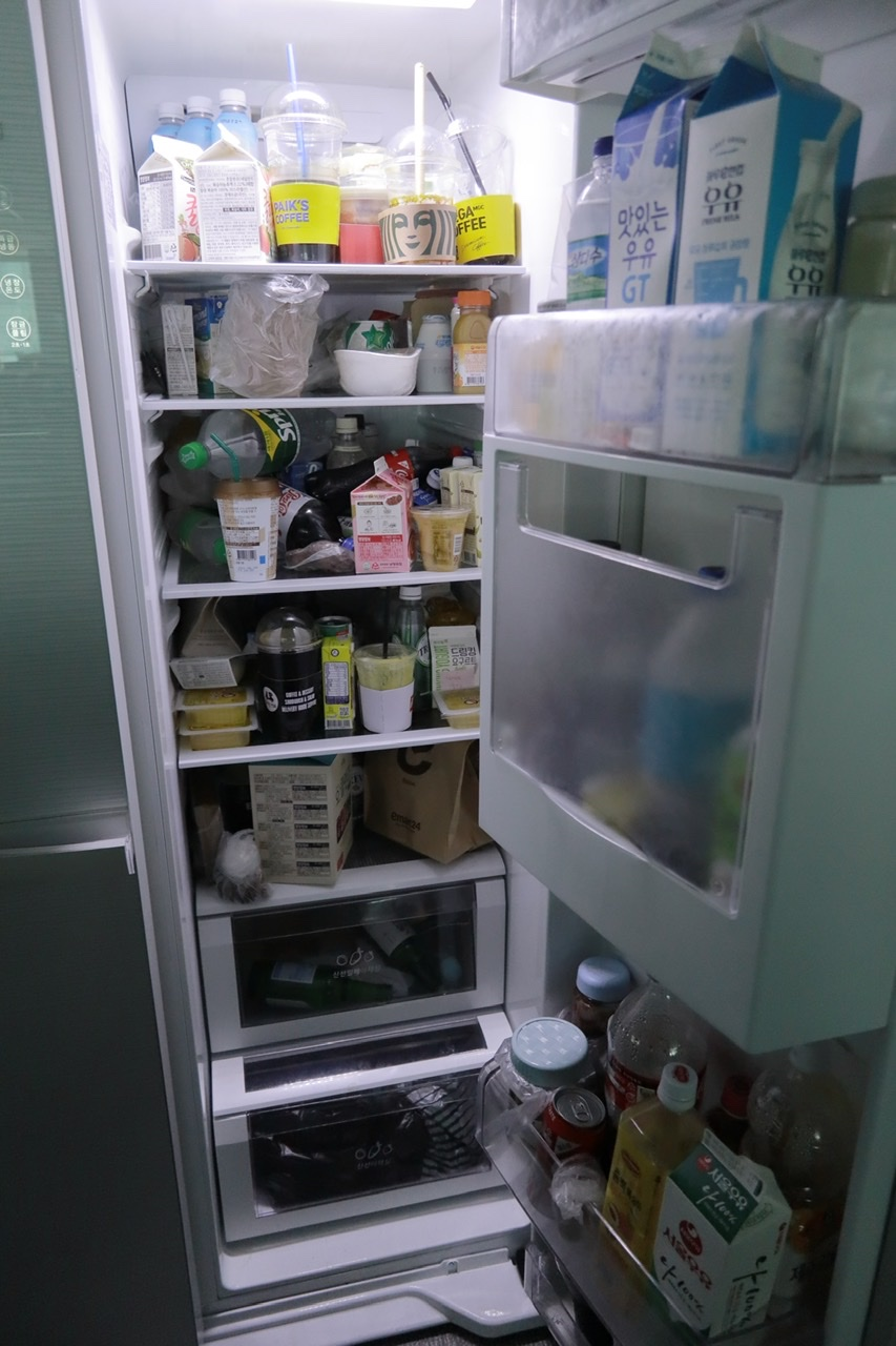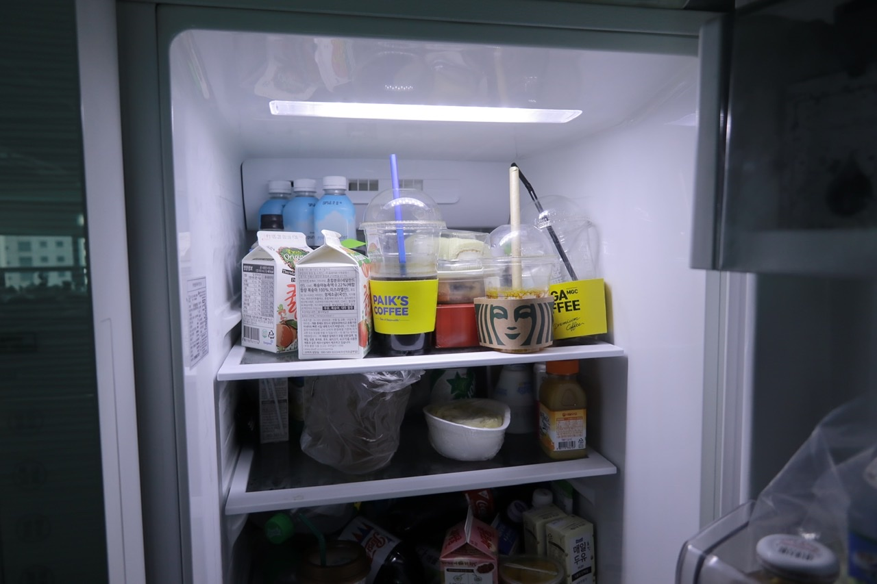 공개된 사진 속에는 먹다 남은 음료들이 어지럽게 들어있는 냉장고의 모습을 확인할 수 있다.