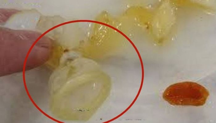 그는 음식 속에서 끝이 묶여있는 콘돔으로 추정되는 물체와 정체를 알 수 없는 액체를 발견했다.