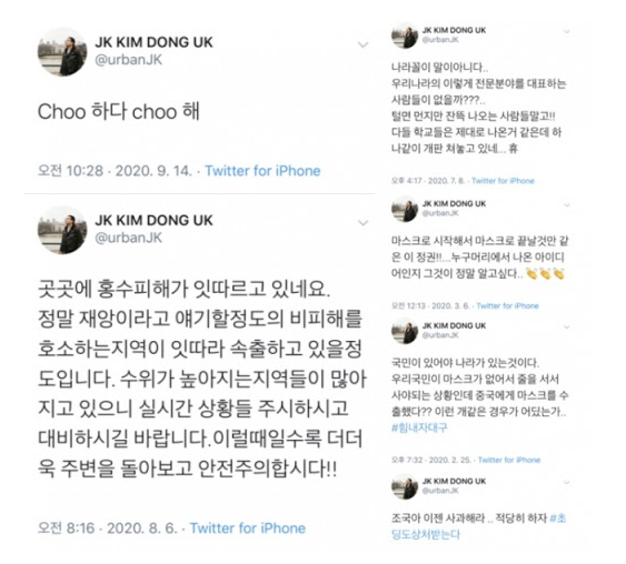JK 김동욱은 과거부터 지금까지 꾸준히 현 정부를 비판하는 내용의 글들을 올린 바 있다.