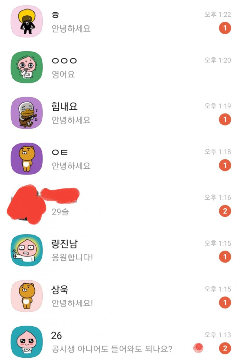 그러자 순식간에 카카오톡 이용자들이 메시지를 보냈다.